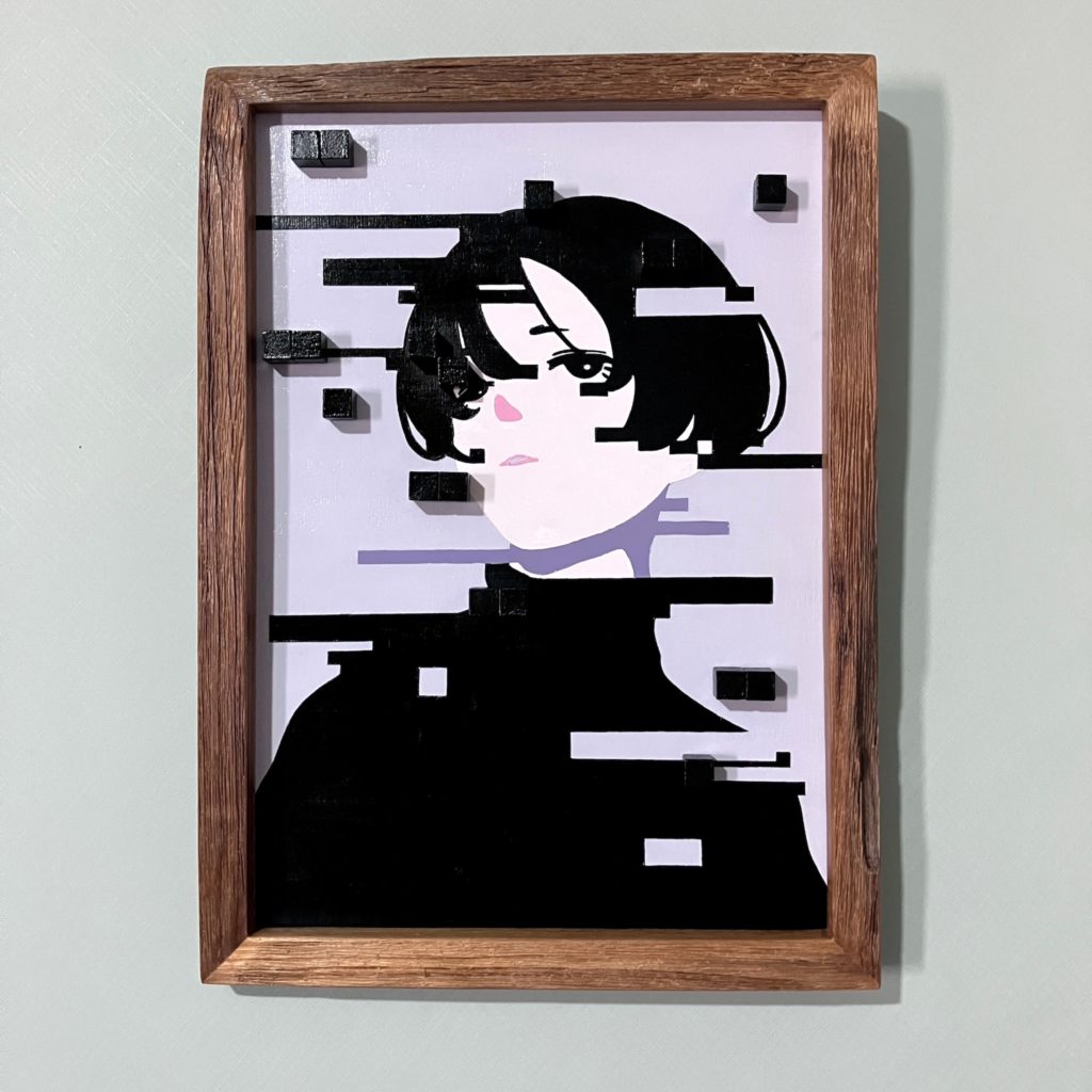 日常に潜む陰鬱や孤独感、”生きるなかで直面する制限”をテーマに制作している。ドットを制約の象徴として用い、解像度の低さを通して曖昧で不確かな自己の在り方を、絵の具と立体ピクセルによるアナログ表現で探っている。都内を中心に展示会やアートイベント出展など活動中。